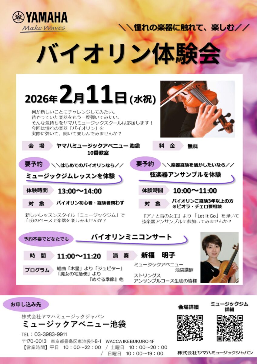 「バイオリン体験会」【4F:ヤマハミュージックアベニュー池袋】