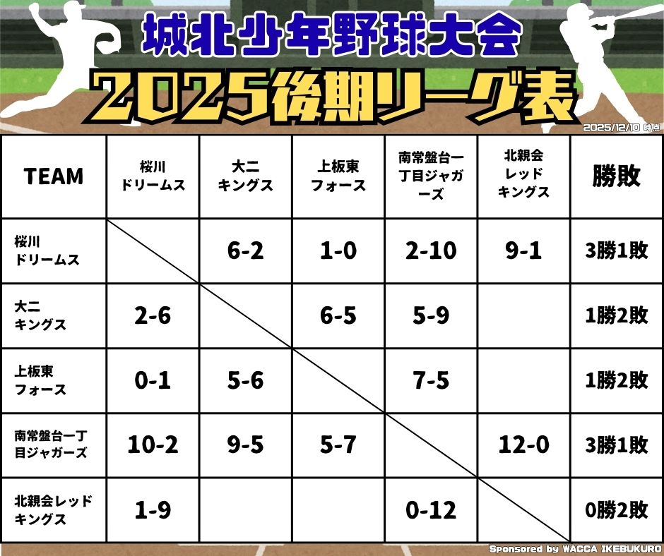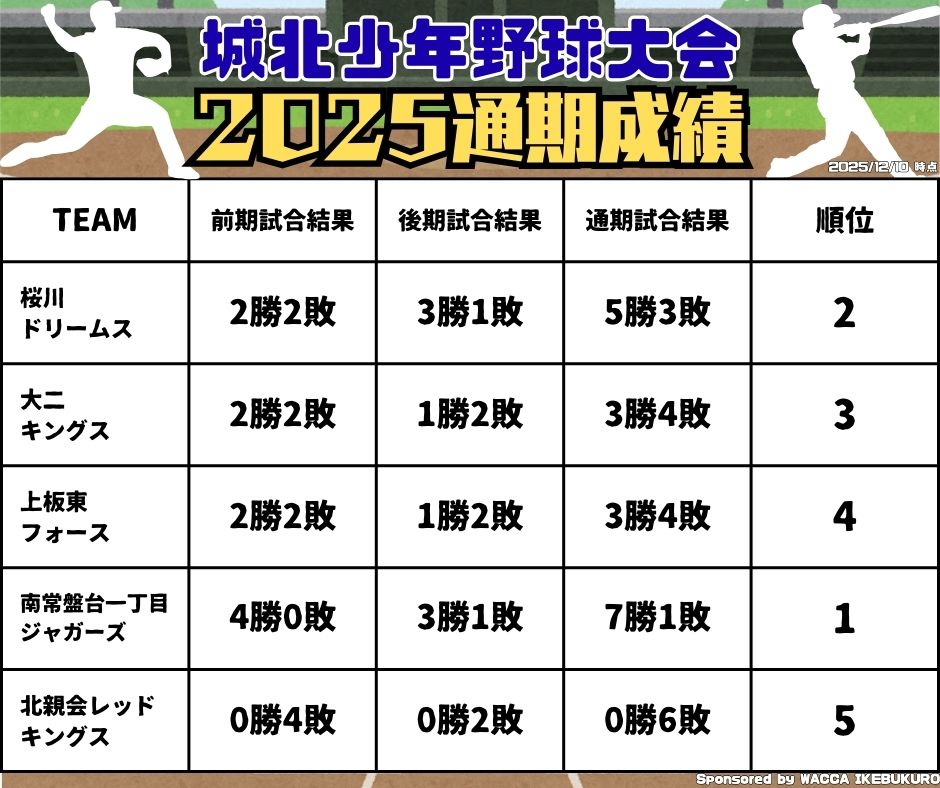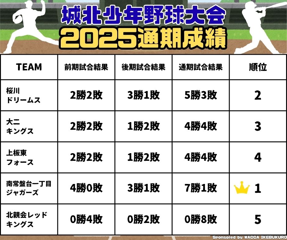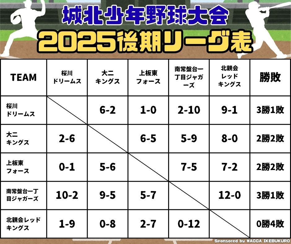 | 名称 | 城北少年野球大会(リーグ制) |