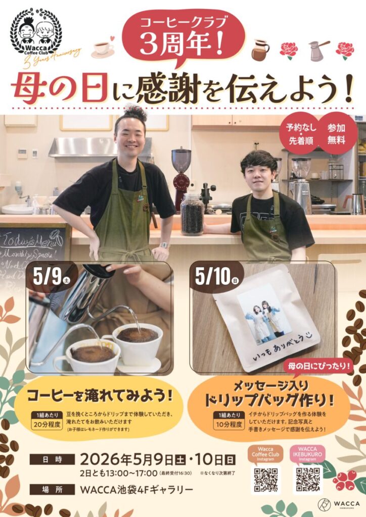 Wacca COffee Club 3周年記念イベント開催!【母の日にコーヒーで感謝を伝えよう】