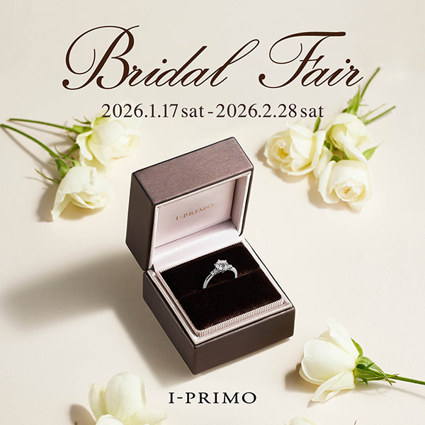 1Fブライダルジュエリー「アイプリモ」では、2026年1月17日(土) – 2月28日(土)に『ブライダルフェア』を開催いたします。
