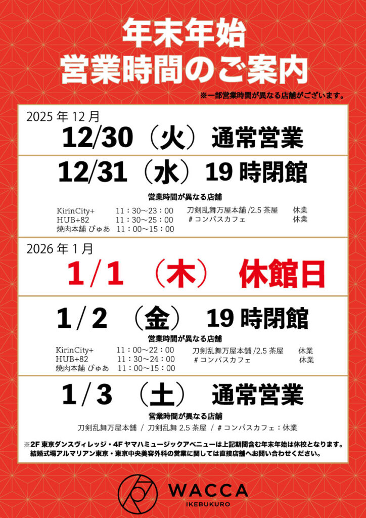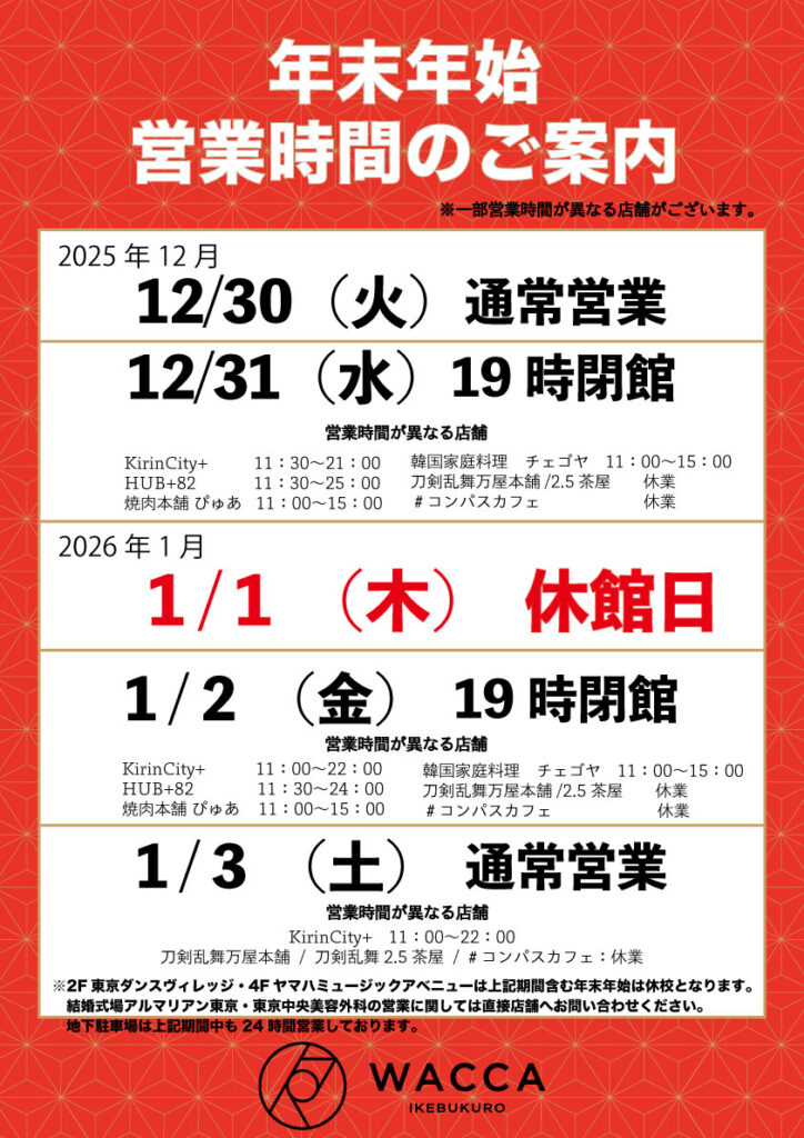 2025年〜2026年 年末年始営業時間のご案内